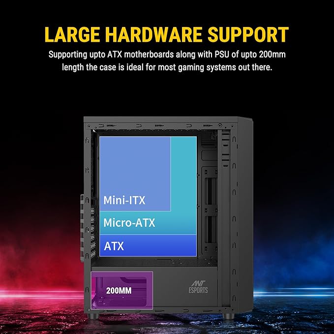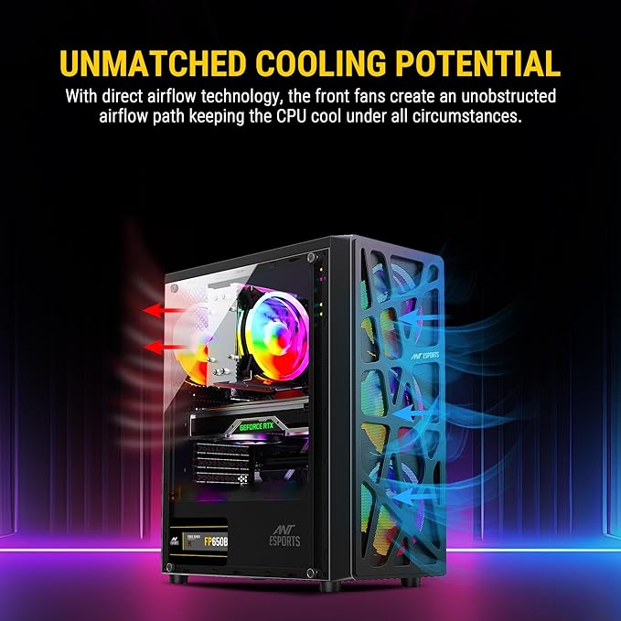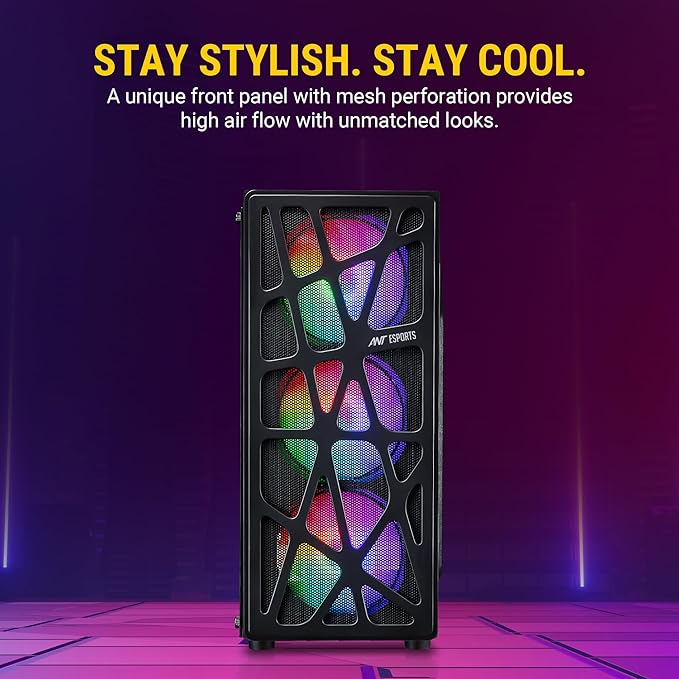 Ant Esports Elite 1100 Mid-Tower Computer Case/Gaming Cabinet – Black | Support ATX, M-ATX, ITX | Pre- Installed 3 x 120mm Front and 1 x 120mm Rear Rainbow Fans