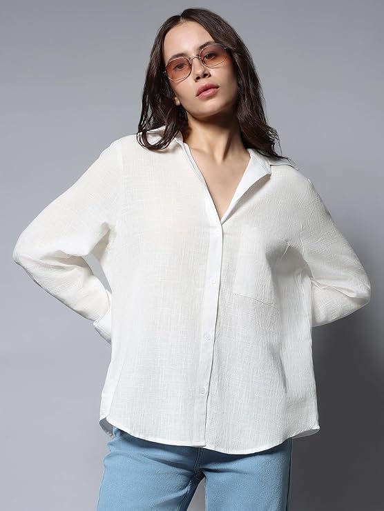 High Star Classic Oversized Spread Collar Long Sleeves Cotton Casual Shirt