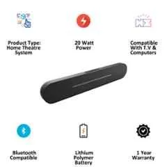 - 20W Portable Soundbar with Rich Bass, Clear Midrange, Crisp High Pitch. Surround Sound Wireless Speaker for Indoor & Outdoor Entertainment.