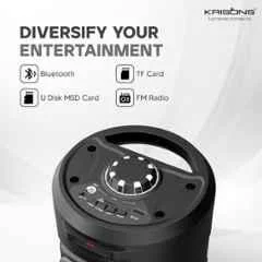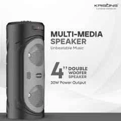 Krisons 30W 4 inch Silverstar Double Woofer Multi-Media Bluetooth Party Speaker with Wired Mic, Digital Display, RGB Lights, USB, SD Card & FM Radio
