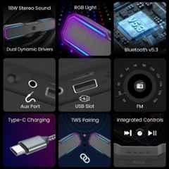 Krisons SB005 18W Multi-Media Bluetooth Sound Bar with 2400mAh Battery, Digital Display, RGB Lights, USB, SD Card, FM Radio & Auto TWS Function