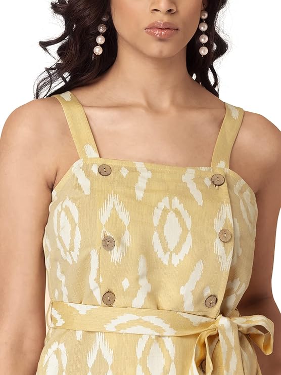 - Take it out to brunch dates or weekend getaways, this yellow A-line kurta is your perfect fit for days meant for fun. Tailored in viscose, it is designed in a double-breasted silhouette and features an ikat print. Style Tip Pair it with easy slip-ons and hoop earrings.