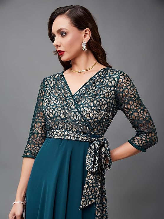 - Style: Wrap | Pattern: Floral | Fit: Relaxed Fit | Length: Maxi | Closure: Zip | Neck: V-Neck | Sleeves: 3/4th Sleeve | Pockets: Yes, 2 Side Pockets