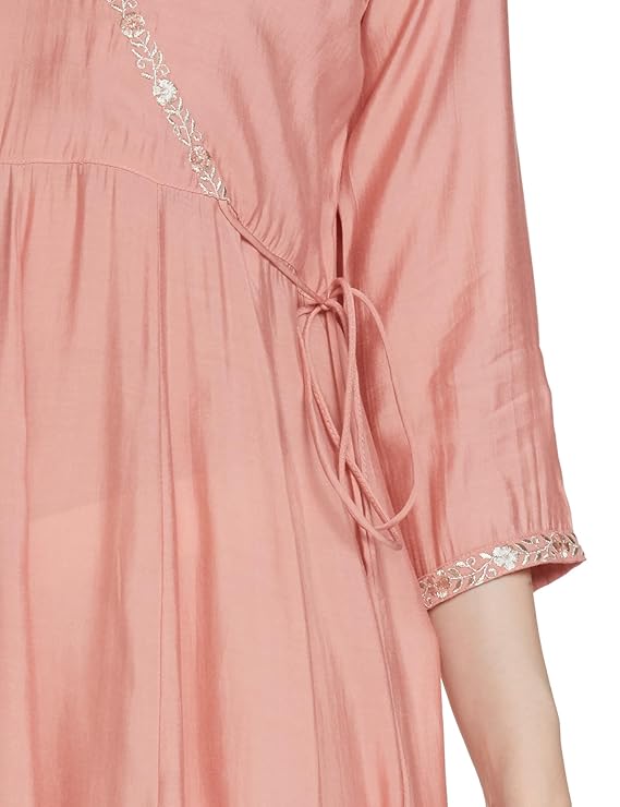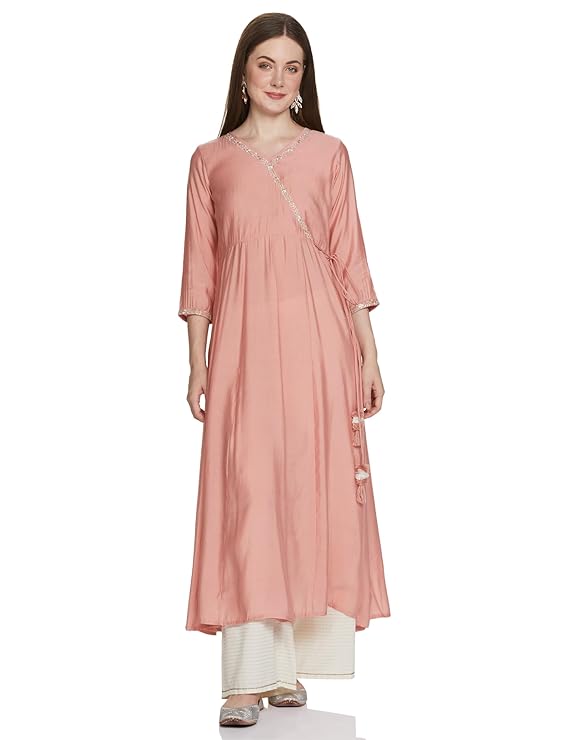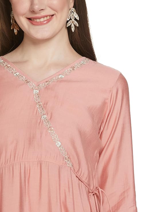 Women’s Muslin Regular Fit Angrakha Zari Embroidered Kurta