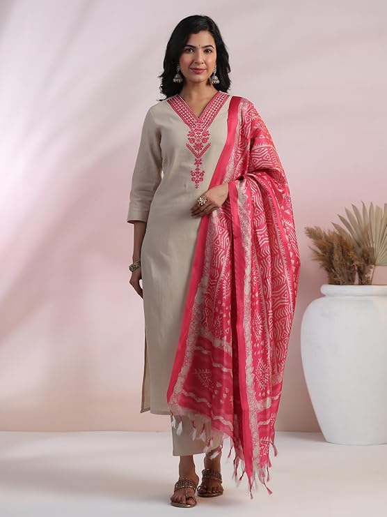 - This set includes: 1 Kurta and 1 Pant with Dupatta || Work :- Embroidered || Neck Style:- V-Neck