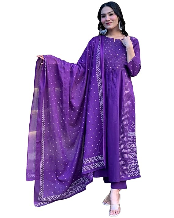 - Style: Anarkali || Length: Calf Length || Sleeves: 3/4 Sleeves || Size Chart- Kurta-S-36 in, M-38 in , L-40 in , XL-42 in , XXL-44 in,Pant :- S-28 in, M-30 in , L-32 in, XL- 34 in , XXL- 36 in,For More Please refer to the size Chart below.