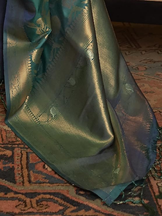 - Color :- Teal blue Saree || Teal blue Unstitched Blouse
